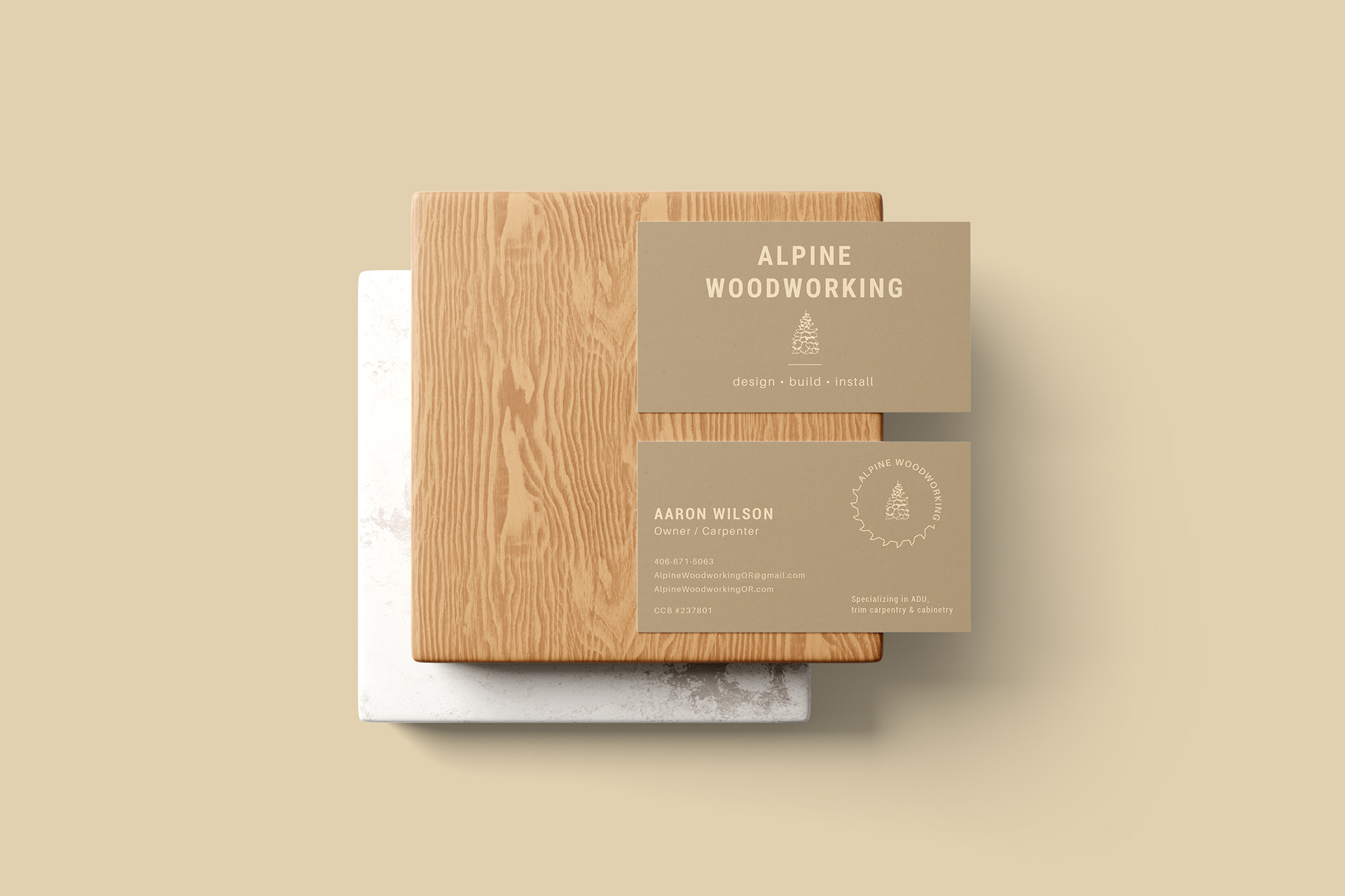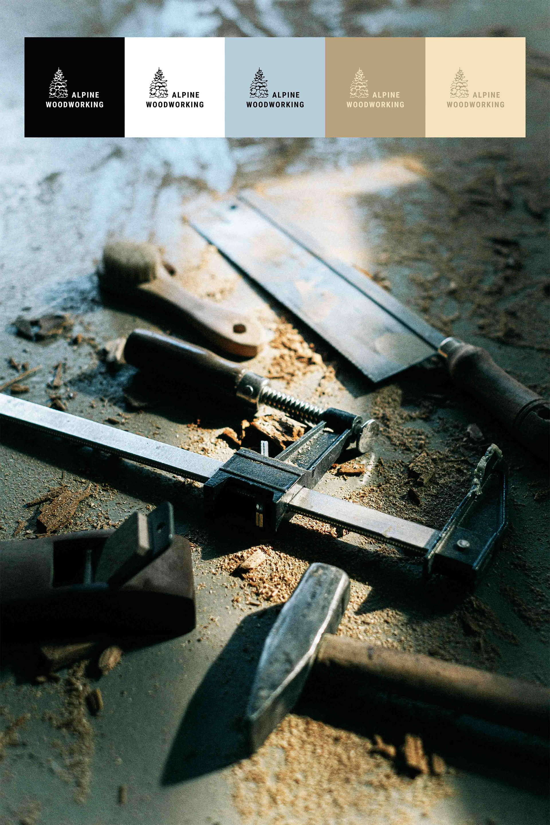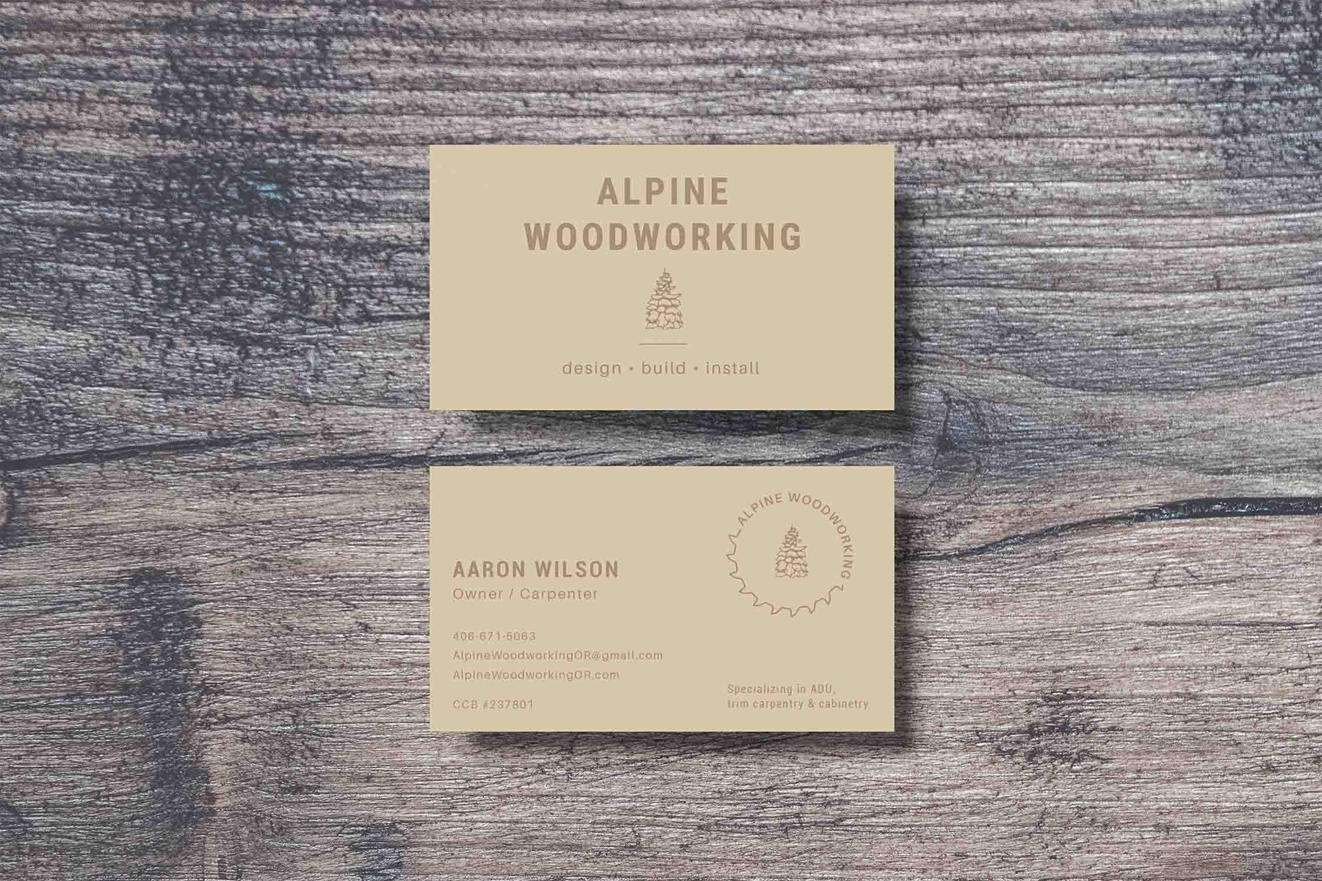 Brand identity for a carpentry business based in the Pacific Northwest, USA. They wanted a branding that evoked handmade craft, the organic feeling of wood and their roots in the PNW.